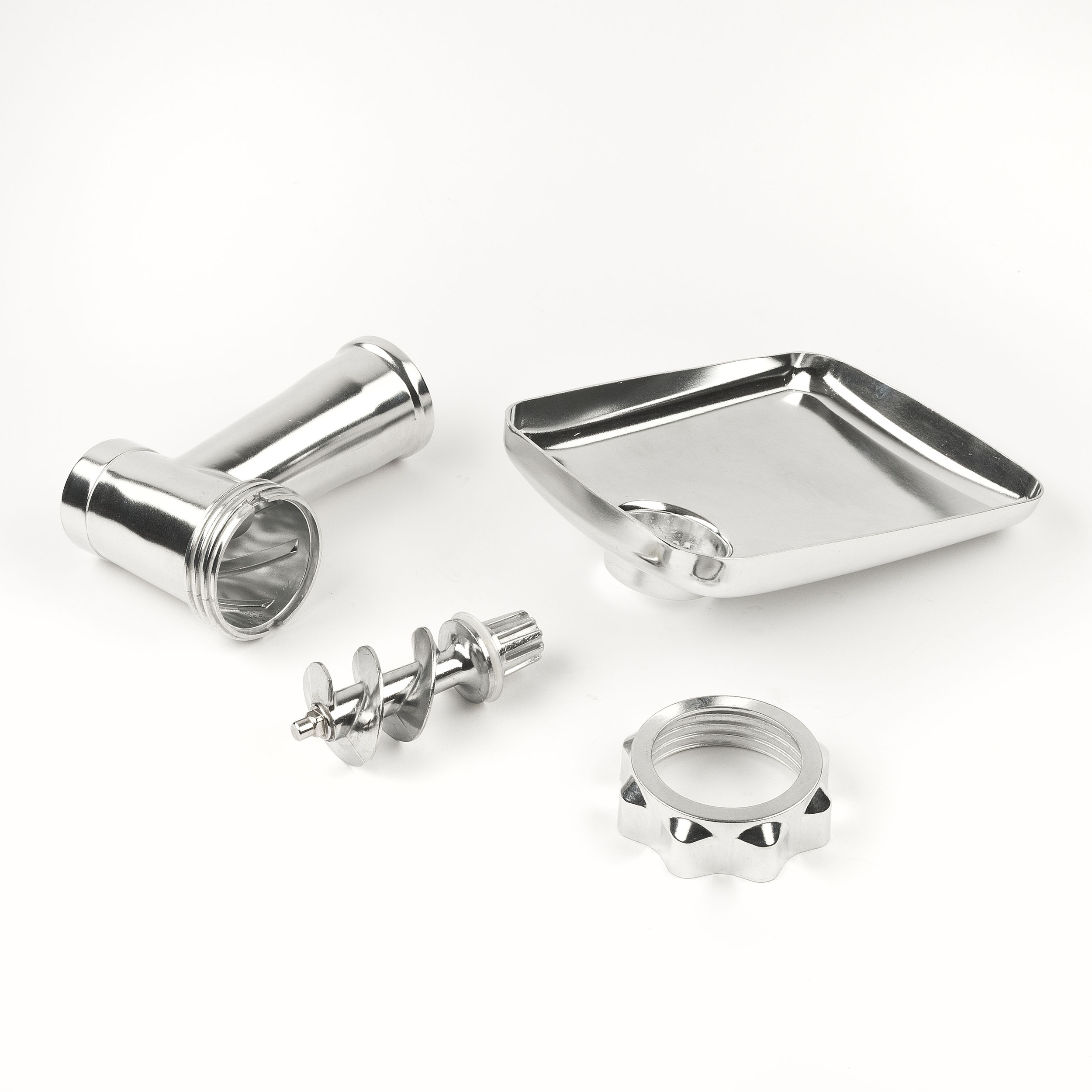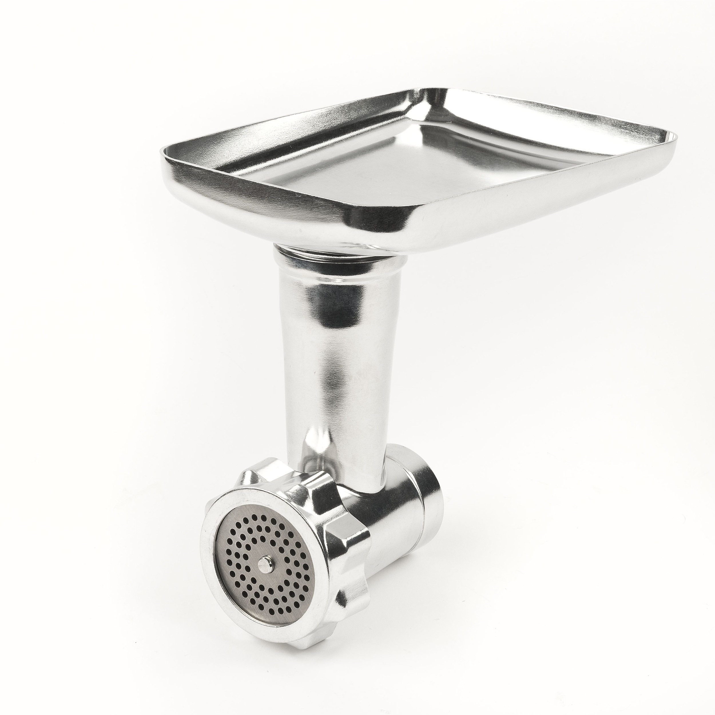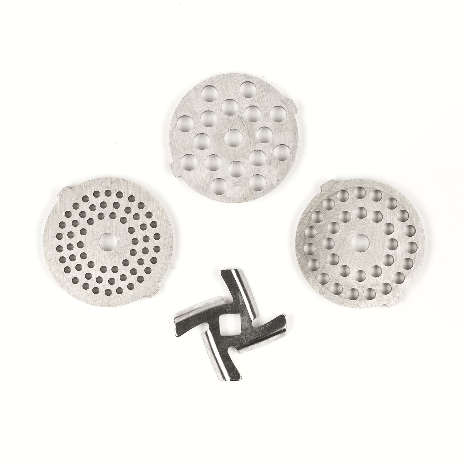 Materiales de alta calidad: la cuchilla y los tres discos de acero inoxidable, junto con el tubo y la bandeja de aluminio, garantizan durabilidad, higiene y seguridad.