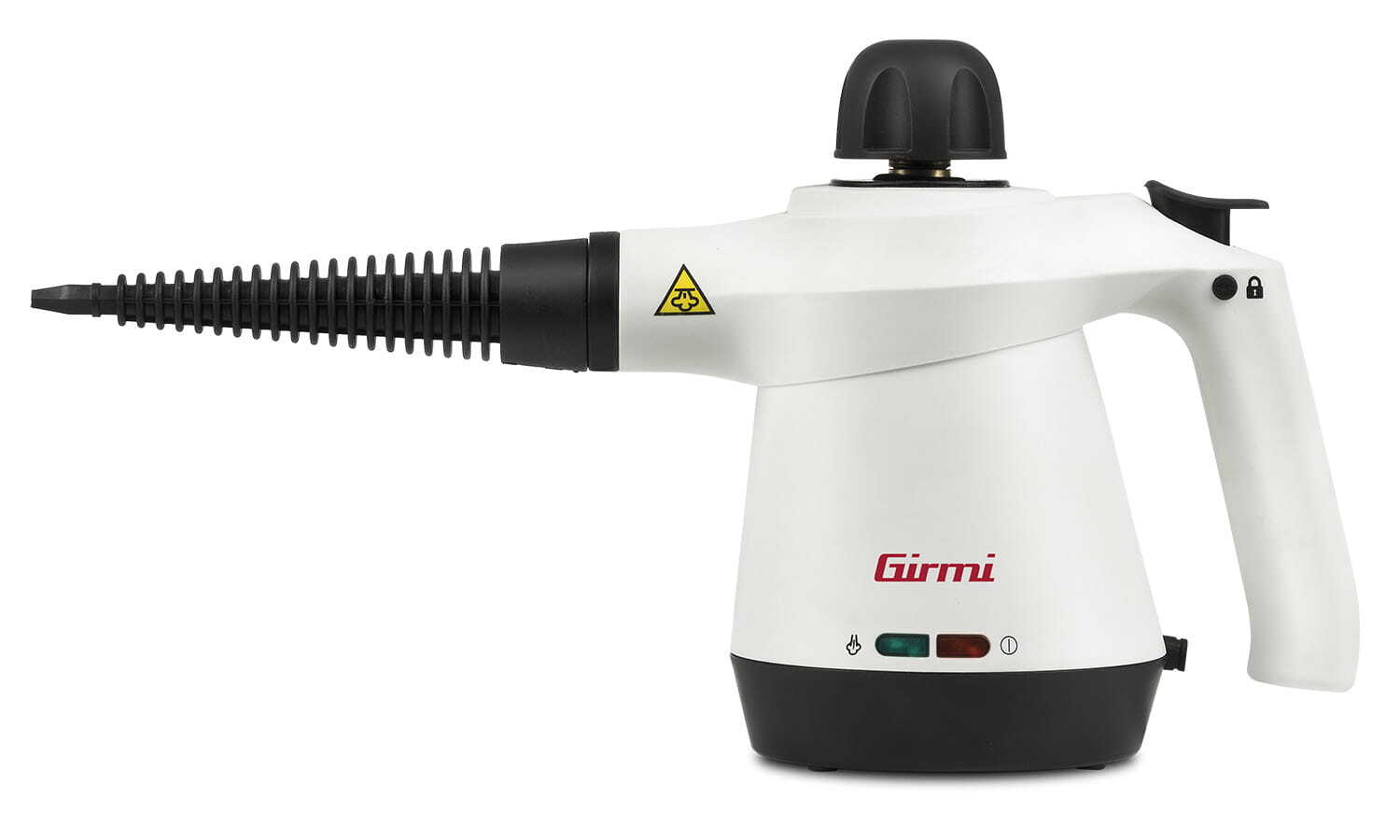 El vapor se libera presionando el botón durante el uso. Al soltarlo, el vapor se detiene automáticamente. Un sistema de bloqueo permite también un flujo continuo cuando sea necesario.