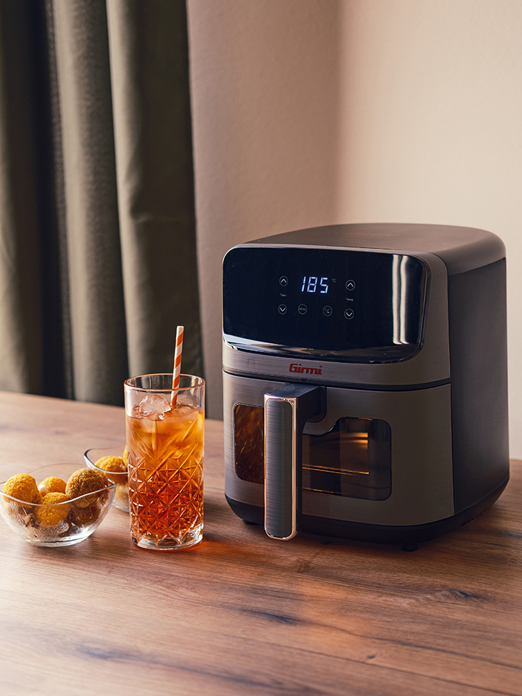 Girmi Ecofrit Lite (FG27) è più compatta, da 4,2 litri, ma con ben 8 programmi diversi. Ideale per chi ha meno spazio in cucina ma vuole la stessa versatilità: pesce, carne, verdure, salsicce, pizza e dolci vengono pronti in pochi minuti. E con la pratica finestra puoi controllare la cottura!